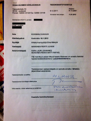 Kunnianloukkauskäräjät ke 18.1.2012 klo 10.30Lue!