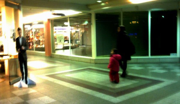 "Kiven hehku". Kari Alonen 2010. Keski-Suomi. Jyväskylä. Matkakeskus. Tiistai 2011-12-13 klo 16:05. Henkilöt ovat sattumalta kuvassa. Mobikuva: Pertti Manninen.