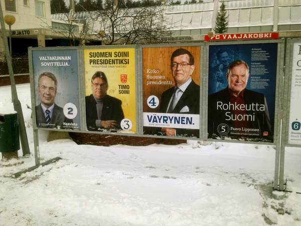 ”... ERI EHDOKKAIDEN TÄRKEIMMÄT VAALITEEMAT OVAT KIRKASTUNEET. SAULI NIINISTÖN KESKEISIN TEEMA ON SELKEIDEN MIELIPITEIDEN VÄLTTELY JA PAAVO LIPPOSELLA KAUNASANOMALEHTIEN BOIKOTOINTI.