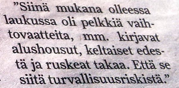 JOS LUVUT NYT ON SITTEN OIKEIN MIELESSÄ. TARKISTAN ASIAN NETTISANOMISTA!
